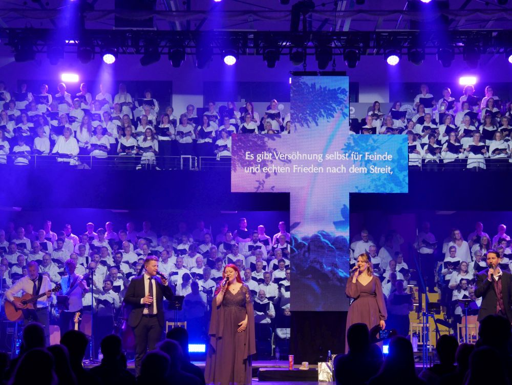 Lemgo. Mit einem eindrucksvollen Pop-Oratorium hat der Musiker Albert Frey der Passionsgeschichte eine zeitgemäße Ausdrucksform verliehen. Sein Chormusical „7 Worte vom Kreuz“ hat bei der Aufführung in der Phoenix Contact Arena vor 2.500 Gästen die enorme Strahlkraft des klangvollen Projekts gezeigt.